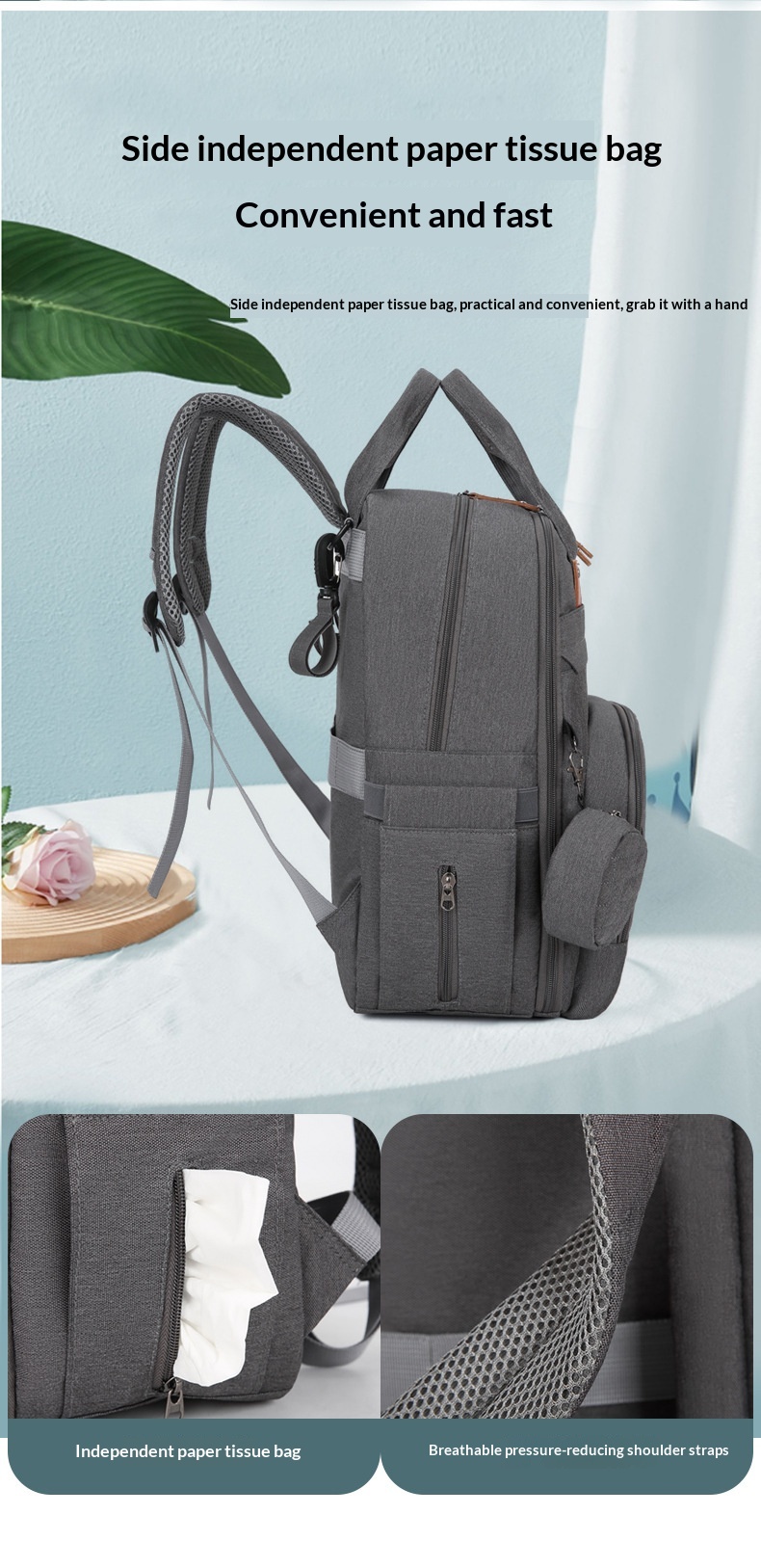 Multi-functional Diaper Bag With A Baby Changing Pad And A Warming Compartment